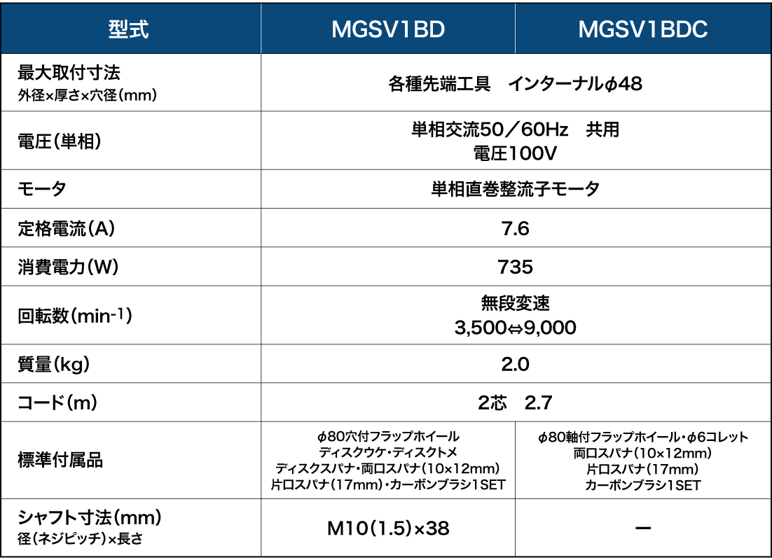 | MGSV1BD 100V | \61,000 | 無段変速、M10ネジタイプ |